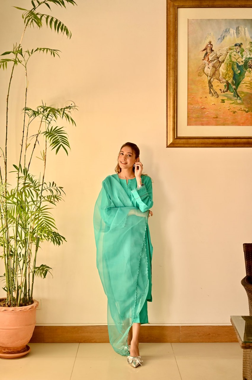 Adorned with delicate details, this dress features subtle embellishments that shimmer like sunlight dancing on the water’s surface. The gentle waves of the sea green hue evoke a sense of serenity and calmness, while the flowing silhouette exudes effortless elegance.