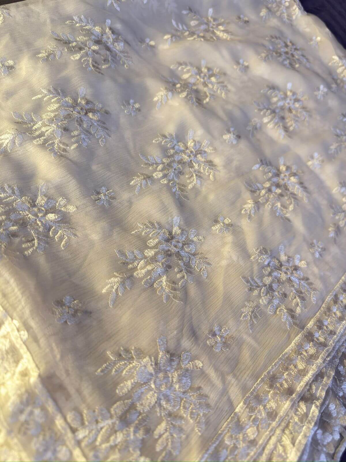 • Whitte chiffon embroidered shirt